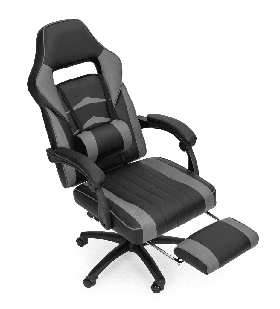 Gamerstol med fodstøtte sort og grå. Denne gamingstol med fodstøtte kombinerer ergonomi og stil, specielt designet til gamere og professionelle, der tilbringer mange timer bag deres skrivebord. Uanset om du har en intens gaming-kamp i gang eller bruger